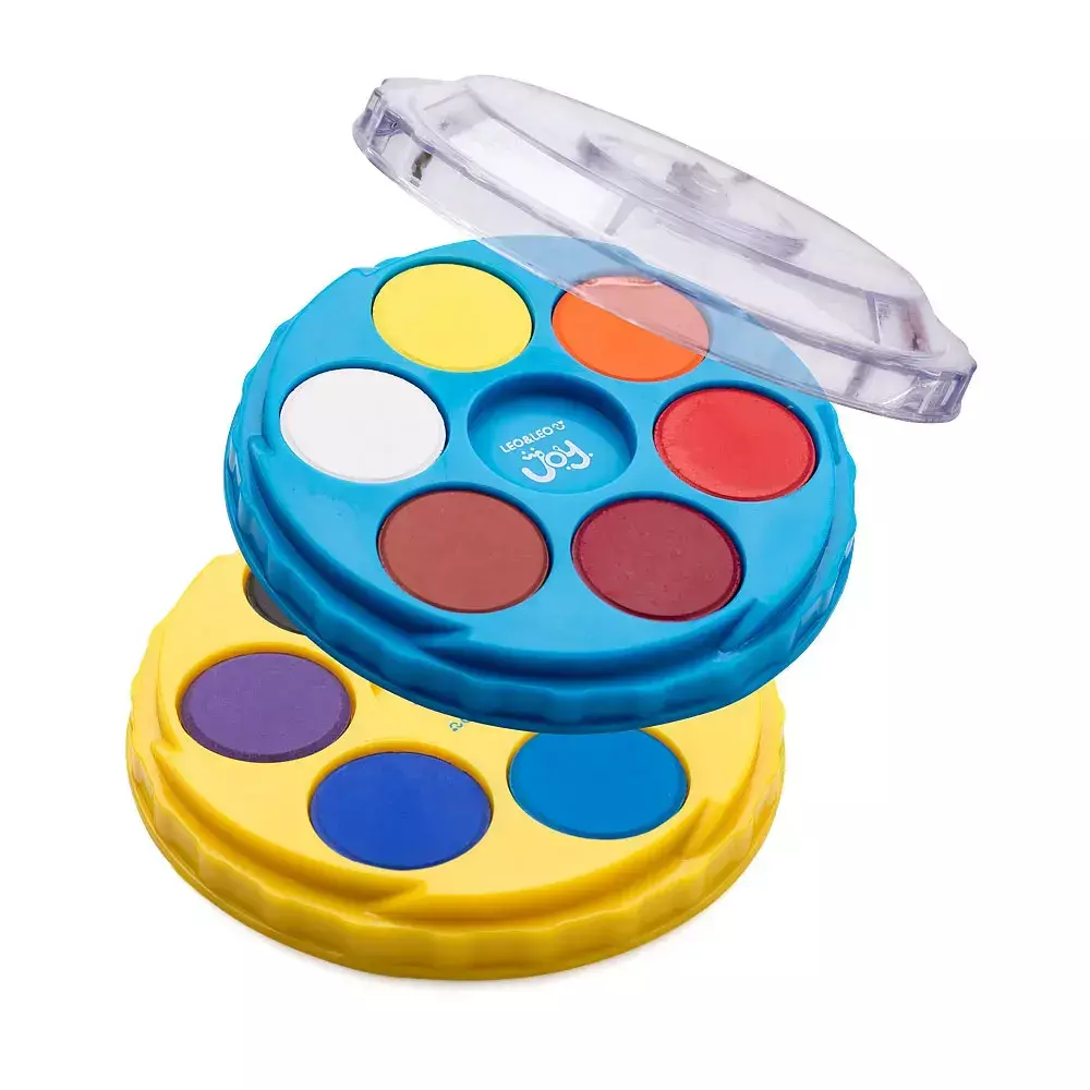 Do tamanho perfeito para levar para todos os lugares, ela é uma aquarela prática, que possui um estojo redondo empilhável de 2 andares com encaixe perfeito. Personalizado com cores exclusivas da coleção, ele vem com 6 cores em cada andar, somando 12 lindas e vibrantes cores.